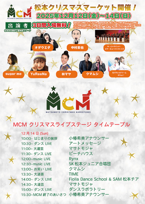 クリスマスフェスティバル前に。花時計公園にて開催される松本クリスマスマーケットのクリスマスライブステージに出演いたします♪